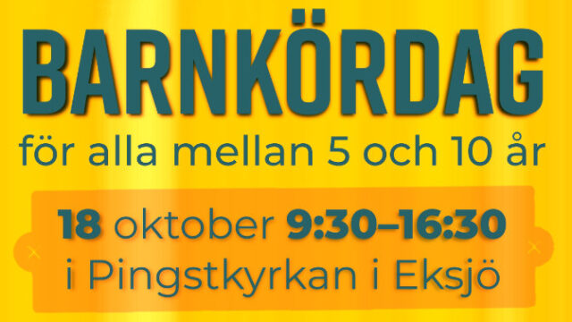 Välkommen till barnkördag i Eksjö. I år är det den 18 oktober kl 9:30-16:30 i Pingstkyrkan, Eksjö. Helgen avslutas med ekumenisk gudstjänst i Pingstkyrkan söndagen 19 oktober kl 10:00. Kom med du också!